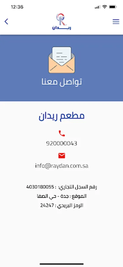 You can also pick up the orders from the branch, just order from the application and select any Raydan Restaurant branch of your choice then just arrive at that branch to pick up your order.