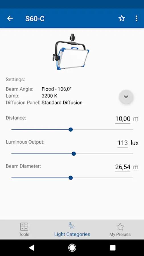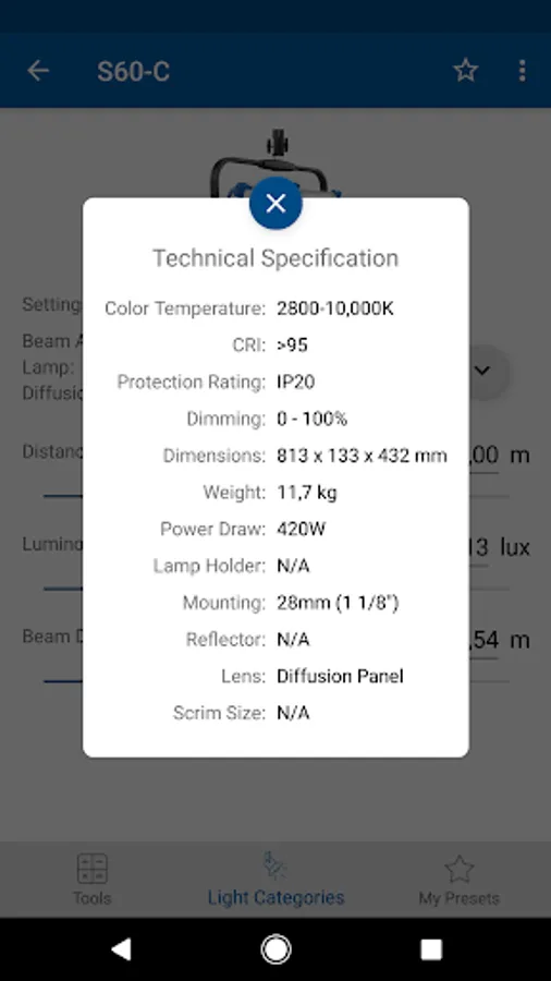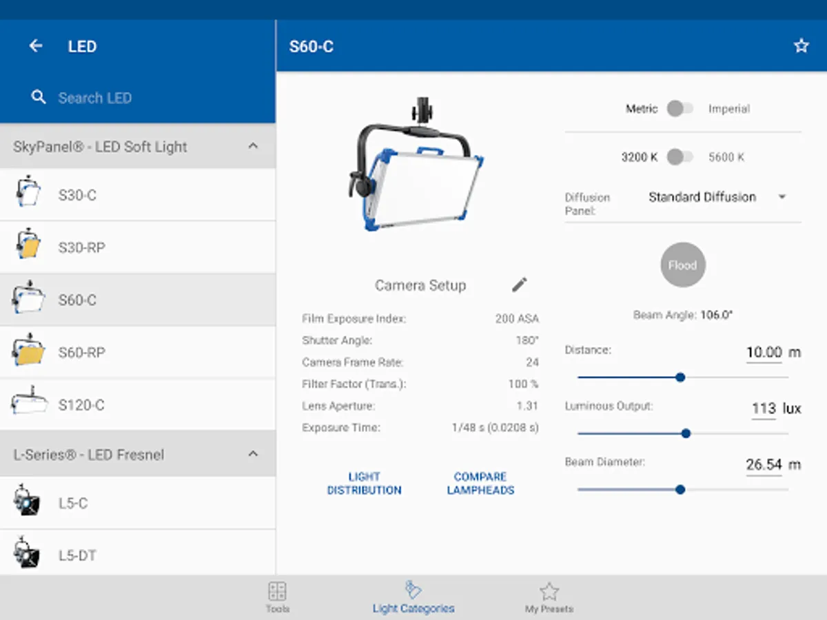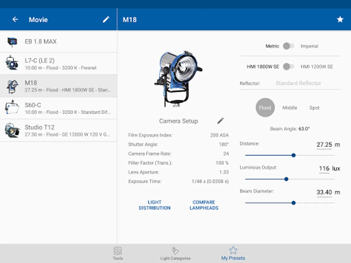 The ARRI Photometric App gives you the ability to quickly reference the photometric characteristics of all of the ARRI light fixtures.