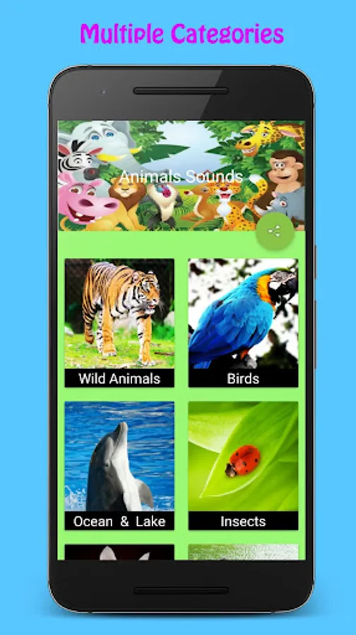 The sounds of animals included in the app are:
