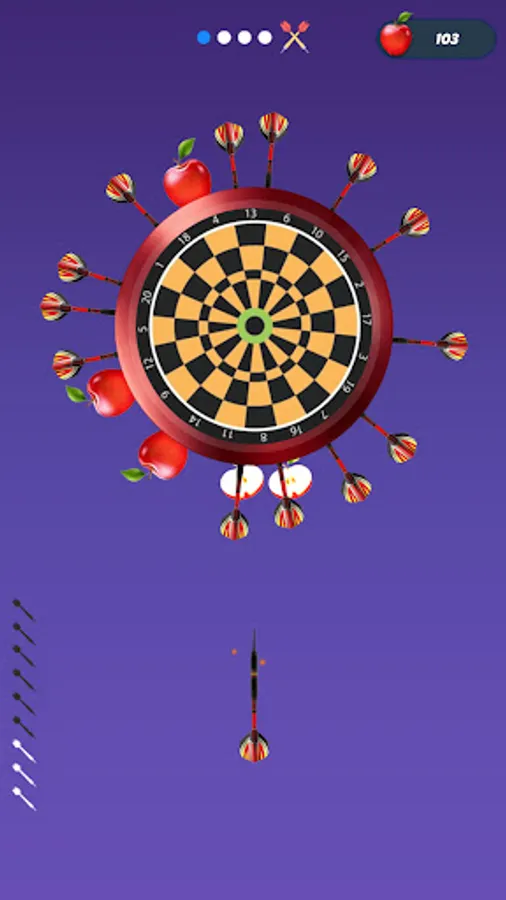 Throw the Arrow into the Dart Board to break them. cut the apples and unlock new Arrows. Every 5th stage is defended by a Deffrent Dartboard, beat them to get exclusive Arrows!.if your real Arrow Master so with your Arrow Can you beat all the Boss DartBoards?