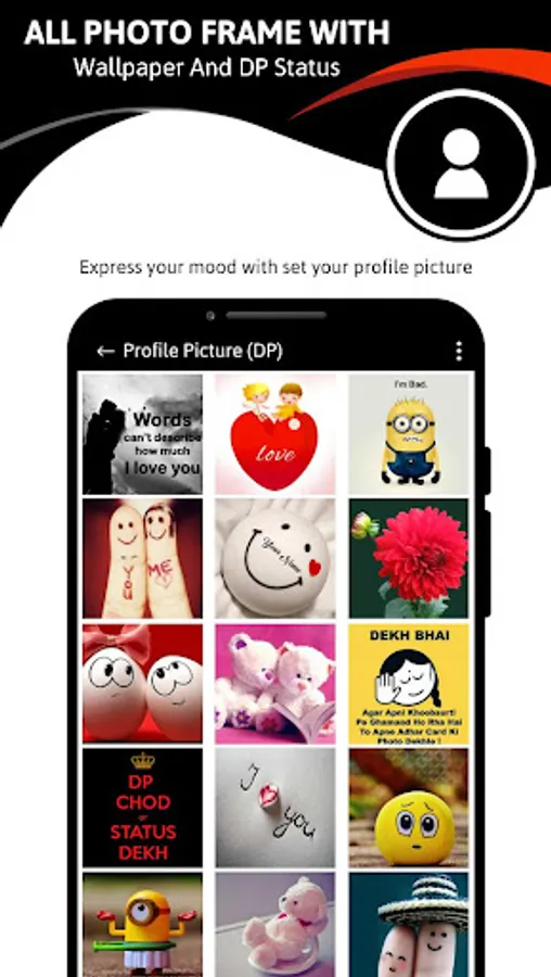⇀ Your Saved item as All Photo Frames, All Dp and Status, All Wallpapers.