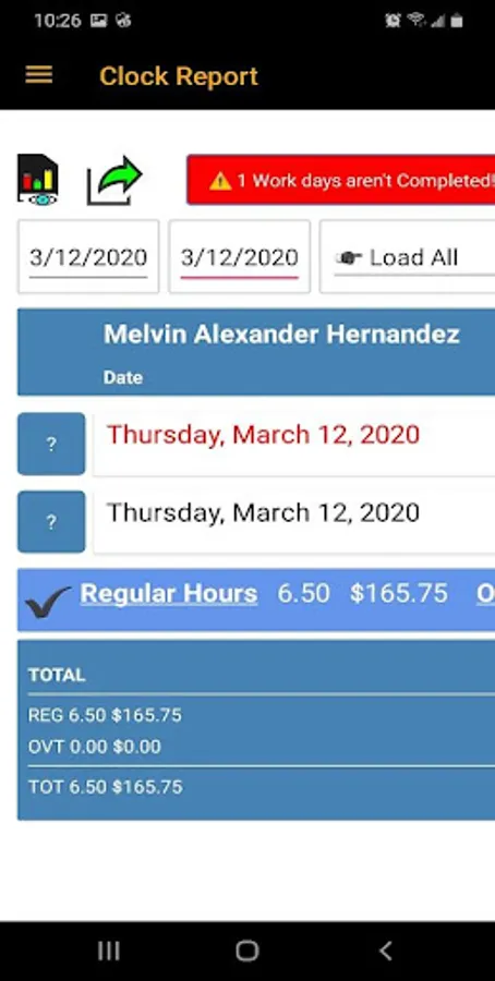 ** Each employee registered can use the Clock (Punch Time) to Work in, Lunch Start, Lunch End, Work out