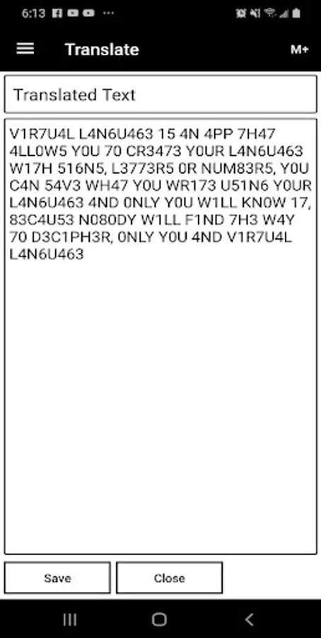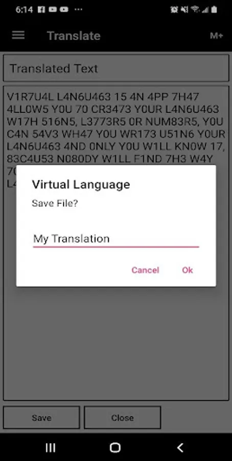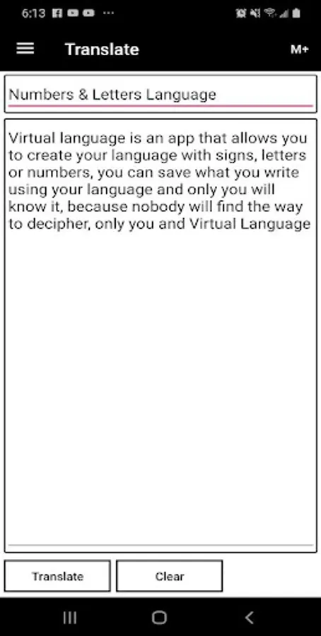 Virtual Language allows you to create language that you need, it hides the alphabet letter by the letter or sign you provide when you create a language. this app can help you to hide important information, or you can use it for fun, writing with your friends or family, you and the person who knows the language are using will be able to translate it, it works between you and the App. see example at : https://arrowat.com/virtuallanguage
