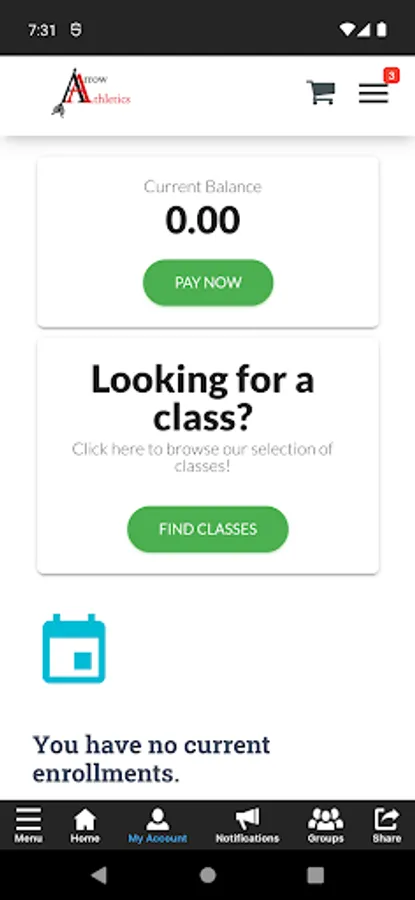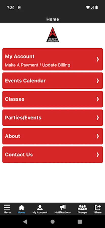 The Arrow Athletics app allows you to manage your account with ease, register for classes, parties, and special events. You'll also receive important notifications about class changes, closings, registration openings, special announcements, and upcoming events.