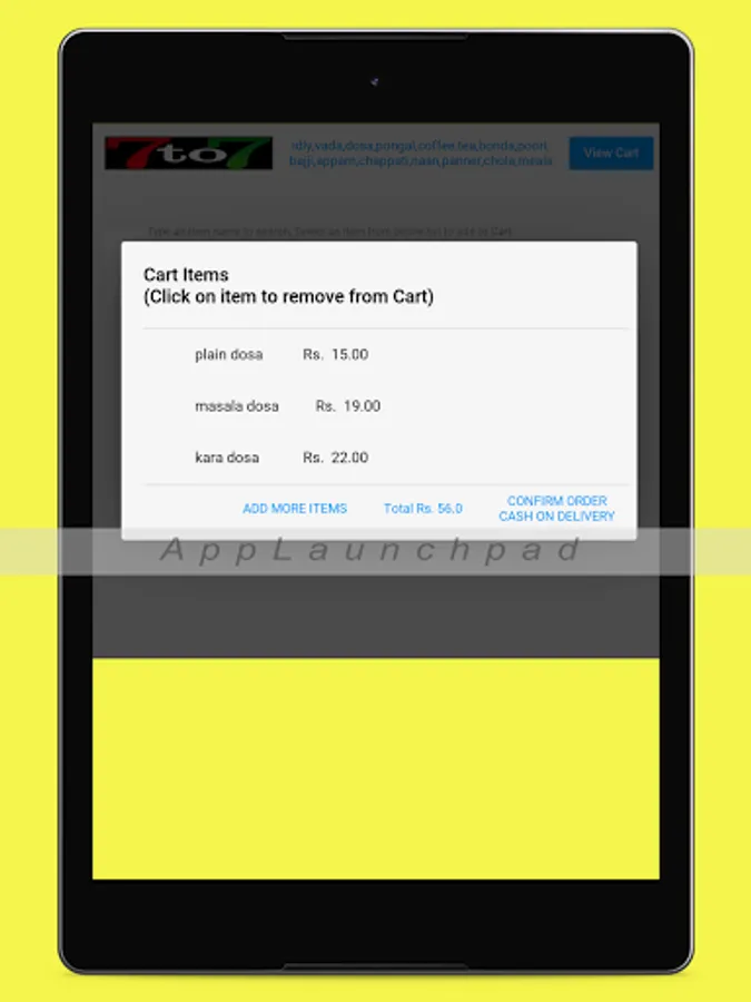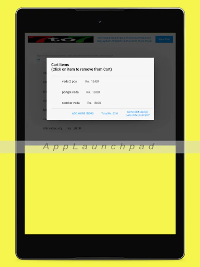 select food items to order for collection or delivery, give delivery details, display order confirmation.