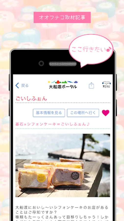 3.オオフナコの取材記事・気になるスポットやお店の基本情報・みんなの投稿をお気に入りすることで「あとで見たいリスト」をつくれます!