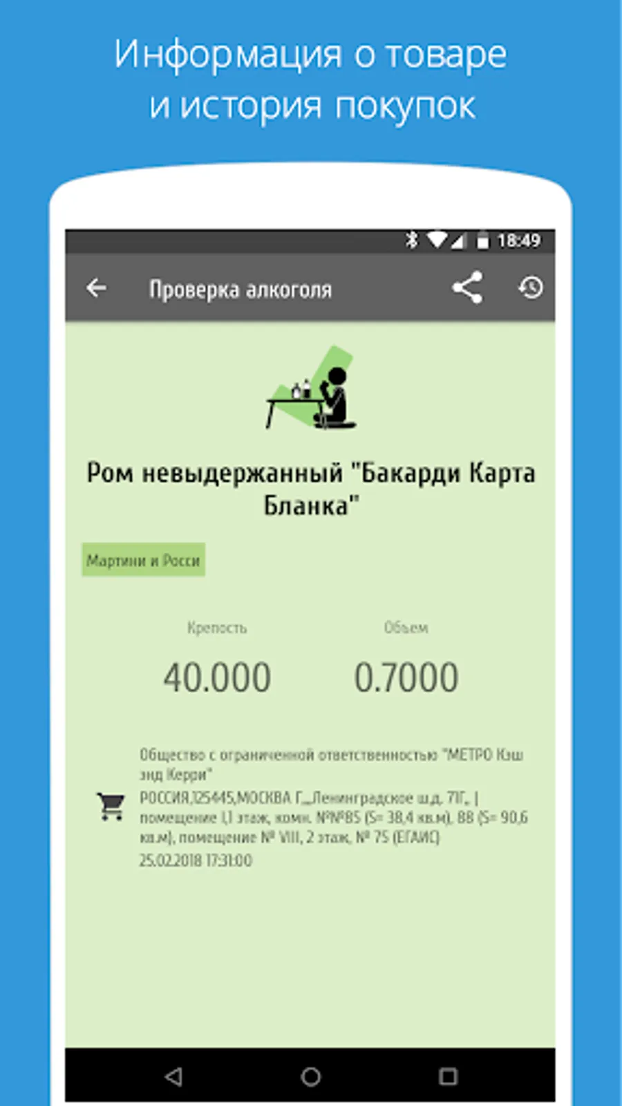 ✓ After some time after purchase, scan the alcohol again. You will see information about the place and time of your purchase of alcohol. This means that the store did not deceive you and registered information about the purchase in the state system of the EGAIS.