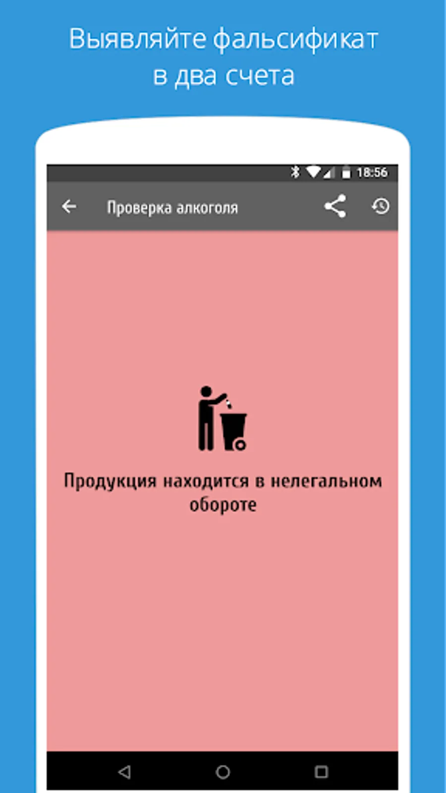 Run the application and scan the bar codes from the excise label on the bottle. After that, the application will verify the data with the database of the EGAIS of the Federal Service for Alcohol Market Regulation (FSAPR) and produce the result.