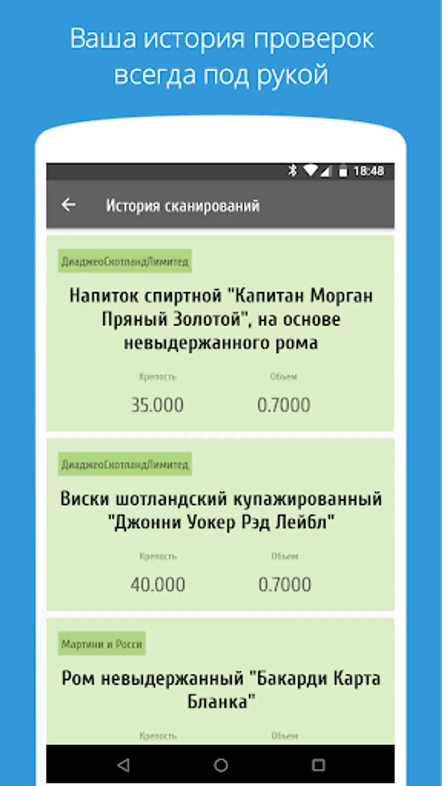 The AlcoScan application helps you instantly verify the authenticity of alcohol according to the excise stamps. Checking the excise stamps for counterfeit allows you to get information about the name, volume, strength of the drink and its manufacturer.
