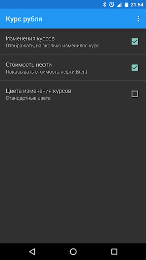 The paid version of the app ruble PRO - https://play.google.com/store/apps/details?id=com.arrowsapp.currencyratepro