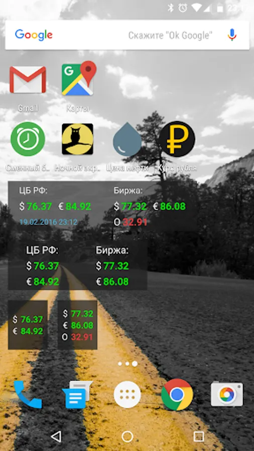 For convenience, the widgets are designed to exchange rates. Update your information in widgets - automatically every 30 minutes or when the application starts. Widgets can adjust the transparency.