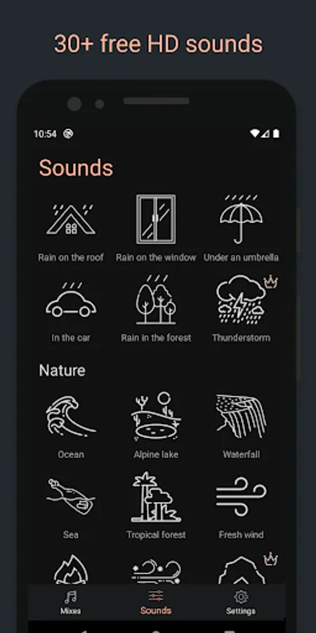 30+ relaxing sounds and ambient sleep sounds for you to customize your own soundscapes: