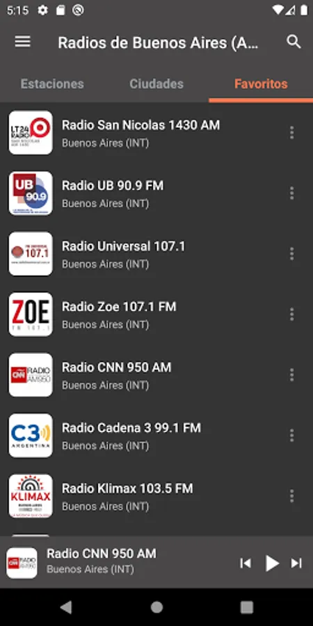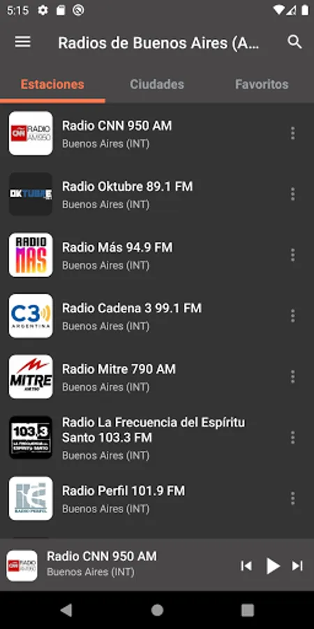 Radio Provincia 1270 AM, "Radio Chascomús 1520 AM", Vatican Radio RV4 America 1150 AM ", Radio Surf & Rock 95.7 FM", Radio Bus 106.1 FM ", Radio Gama 1490 AM", Radio La Red 91.3 FM ", Radio Record 102.5 FM ", 3F Radio FM 91.5", Radio Popular 92.5 FM ", Radio BahÃa Blanca 840 AM", Radio Miter 790 AM ", Radio Continental 590 AM", Radio Aspen 102.3 FM ", Radio Rivadavia 630 AM", Radio La Red 910 AM ", Radio Amadeus 91.1 FM", Radio 10 710 AM ", Radio 750 AM", Radio CNN 950 AM ", Radio La 100 99.9 FM", Radio Los 40 105.5 FM ", Radio Cooperativa 770 AM" and many other stations.