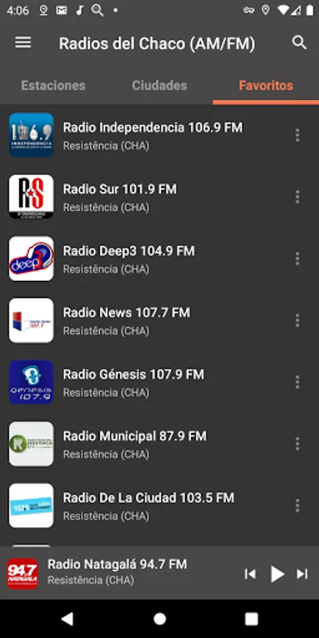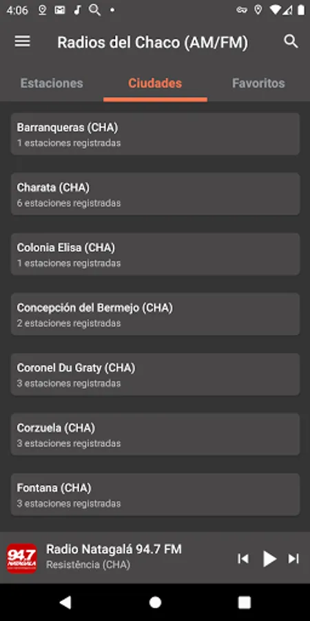 Radios de Resistencia, "Great Resistance", "Roque Sáenz Peña Presidency", "Villa Ángela", "General José de San Martín", "Juan José Castelli", "Charata", "Quitilipi", "Las Breñas", "Machagai "," Tres Isletas "," La Leonesa "," General Pinedo "," Corzuela "," Villa Berthet "and many other Chaco cities.
