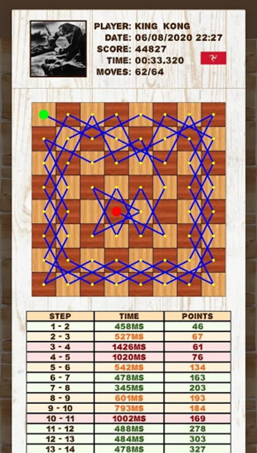 Visits every square of a chessboard exactly once as fast as possible to enter in Hall of fame.