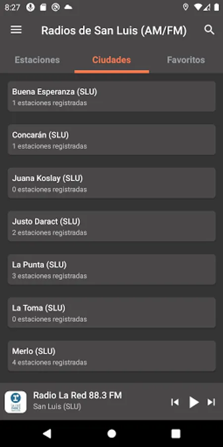 Radios from Villa Mercedes, "San Luis", "Villa de Merlo", "Juana Koslay", "La Punta", "Justo Daract" and many other cities in San Luis.