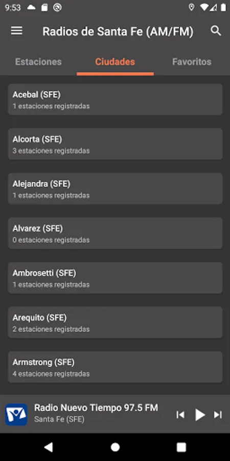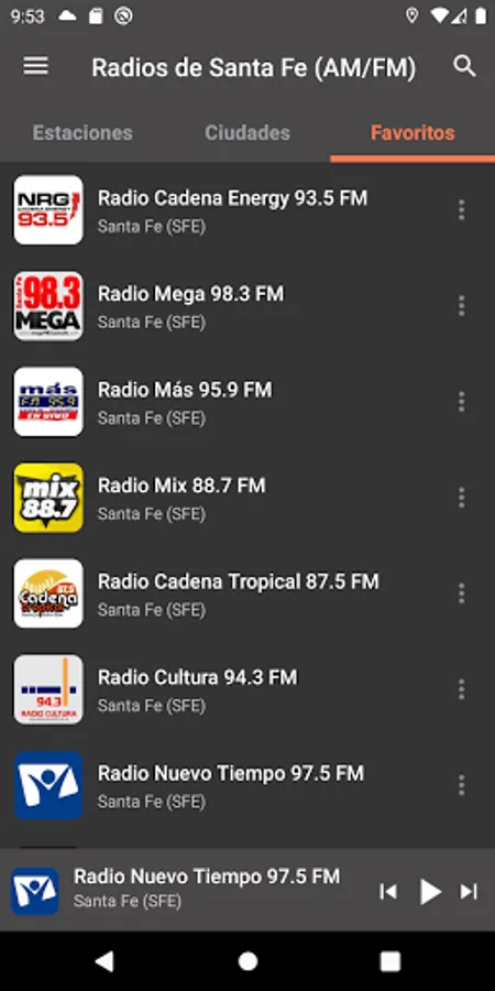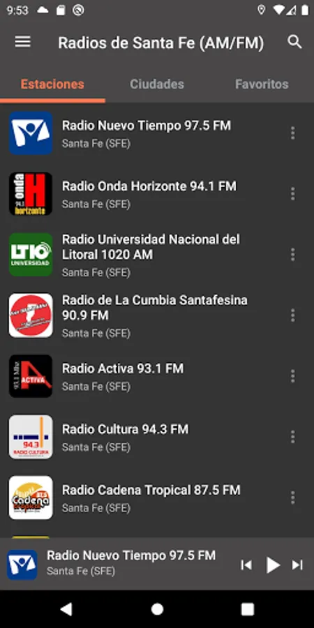 Manually select the best radio stations in the province of Santa Fe (SFE). Download our application and listen to everything without headphones.