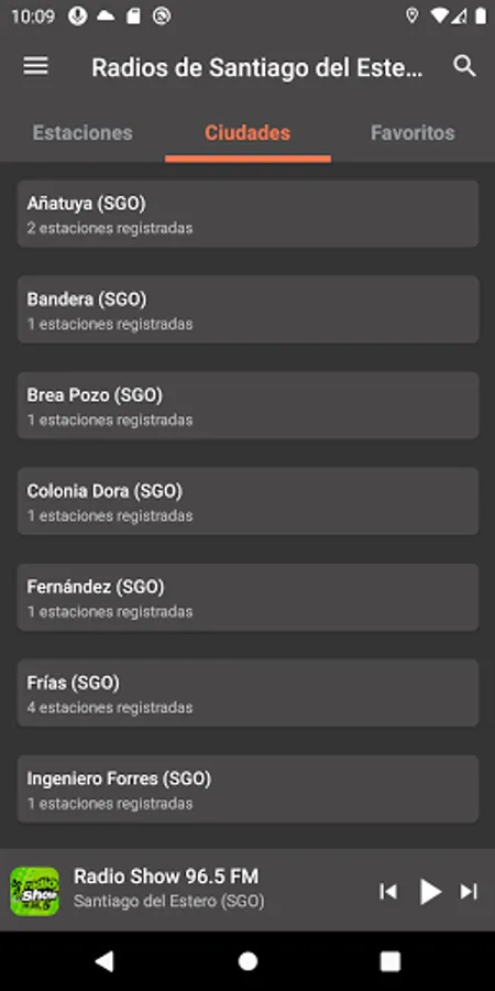 Radios from La Banda, "RÃo Hondo", "Robles", "General Taboada", "Choya", "Moreno", "Copo", "Avellaneda", "Pellegrini", "Loreto" and many other cities in Santiago.