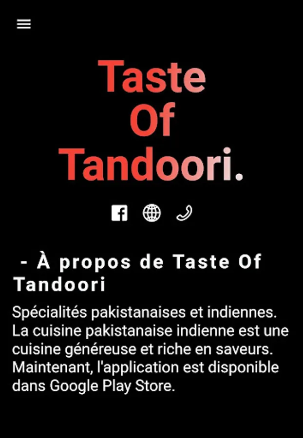 Pakistani and Indian specialties.Pakistani Indian cuisine is generous and rich in flavor. App provides user to place an order before going to restaurant so the order get ready before user reach the restaurant.
