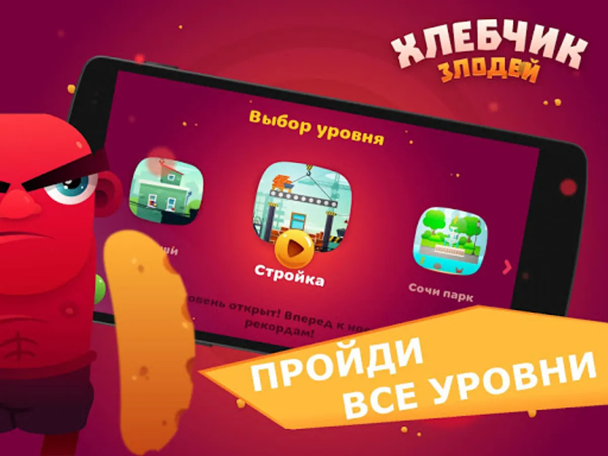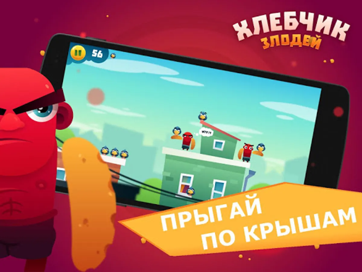 Villain Hlebchik - a fun arcade-taymkiller. Stealing, like a ninja for crumbs, jump across rooftops, building on birds and is becoming stronger and more cheerful. Especially because recently Hlebchik pump over and now it is moving faster and more agile than ever before. But this good news and there is bad - feathered foe also are on the alert, so that the birds became more cunning. Everyone chooses for themselves: shooters, strategy, arcade and quest. But those who want to relax and have fun, have pumped myself Hlebchika in the smartphone and our begalka-skipping rope helps them to escape from everyday worries. We have opened for you a new level - now it is your turn! It's time to compete with your friends,