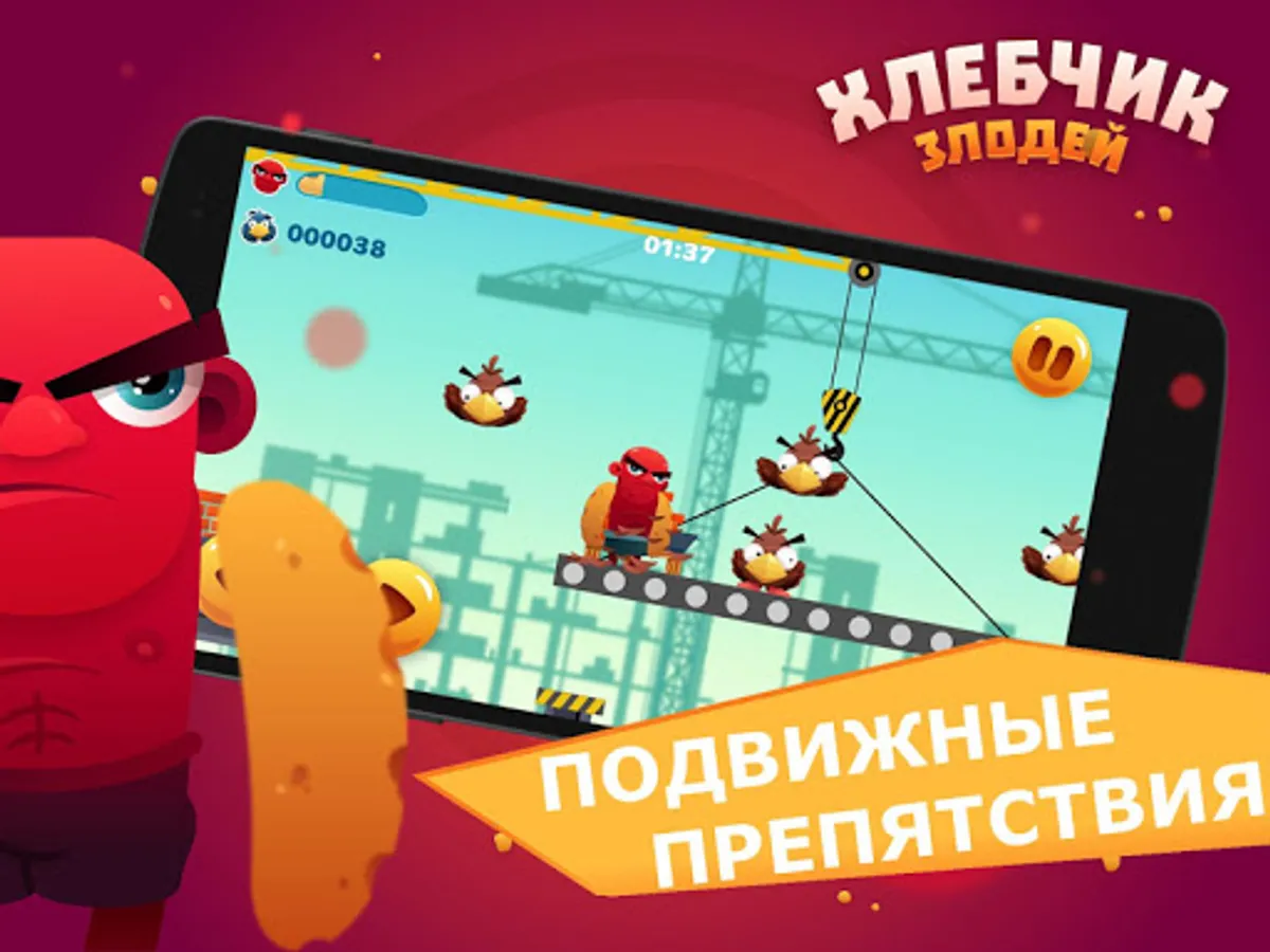 Children's games are over, now you - villain Hlebchik Hands-Batons and in front of you waiting for the fight against starving and very evil birds for each breadcrumb! Be careful and look around. Designated battle will change one by one: first you find yourself on, full of hazards, emergencies and moving obstacles, construction site, the following will be quiet and peaceful in appearance