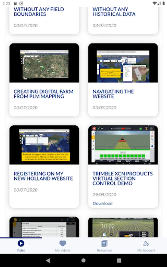A comprehensive library contains practical and useful step-by-step video tutorials for New Holland PLM customers. These videos walk you through setting up and operating your displays, guidance systems, and more.