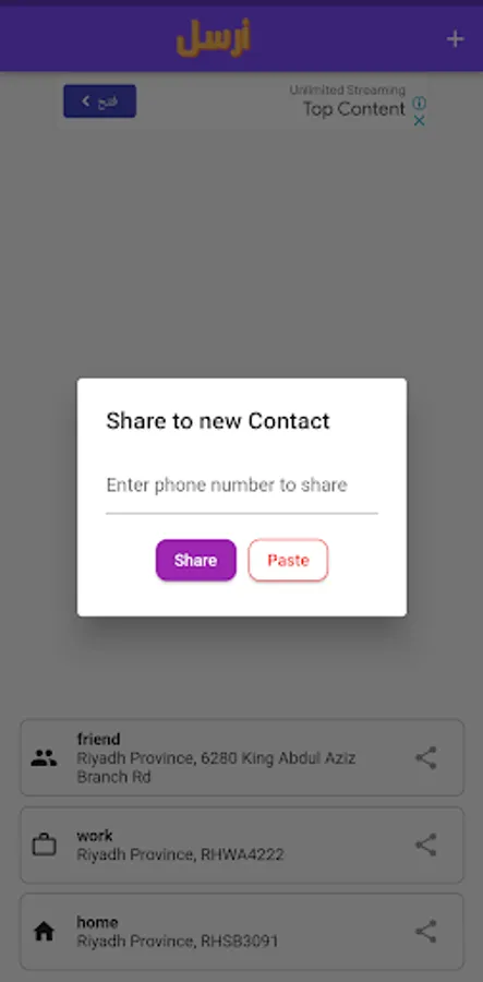 The Arsal application is ideal for use in the field of delivery, as users can share the exact location and details with the delivery workers easily and quickly. Thanks to the feature of sharing details on WhatsApp without having to save the contact, users can save time and effort in the sharing process.