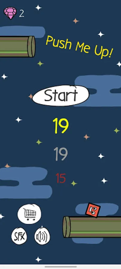 Push Me up is an easy and yet exciting game. The aim of the game is to get the high score and to beat your friends. All you need to do is to press left and right on the screen to push the character up trough the pipes. Avoid the edges of the screen and collect the gems on your way up!