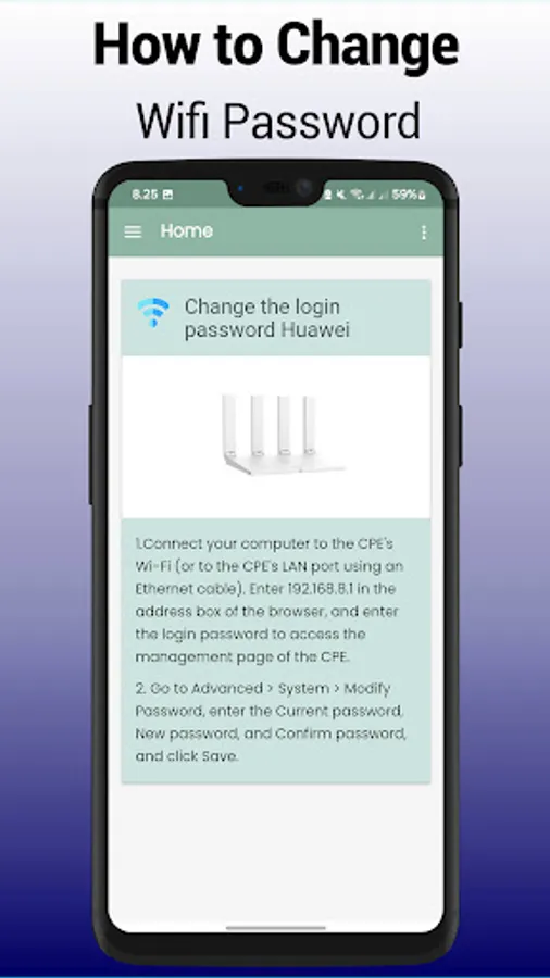 Our application explains how to change your wifi password. It will help you as a guide when you want to change your wifi password for security. You can log in to the router with the default username and password, and then perform the wifi password change process.