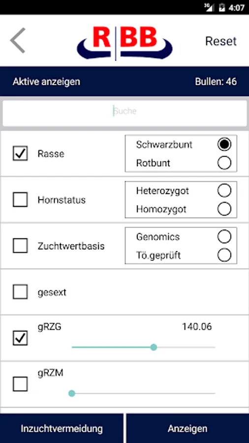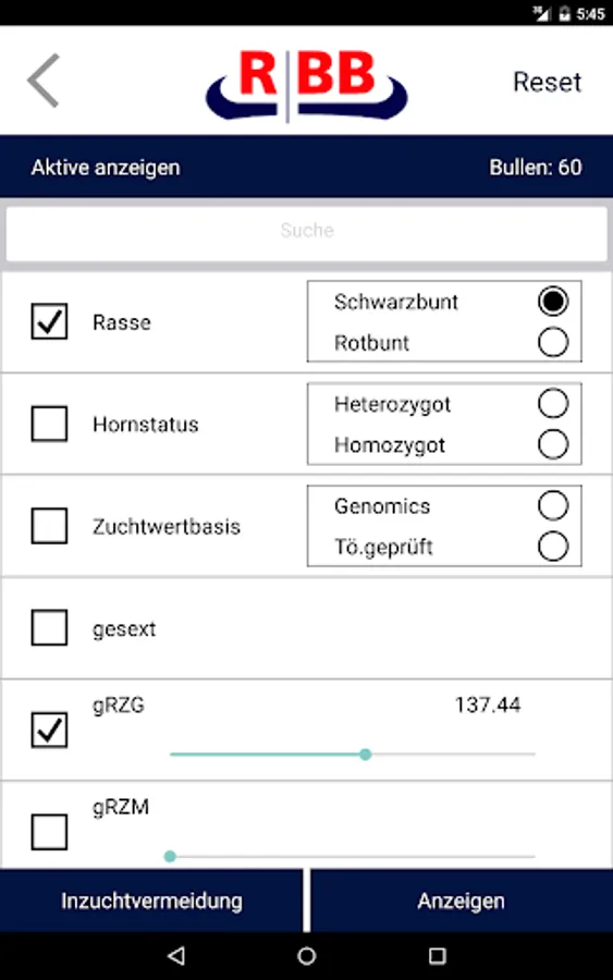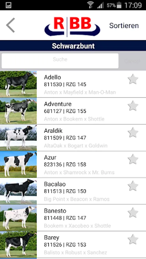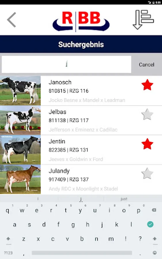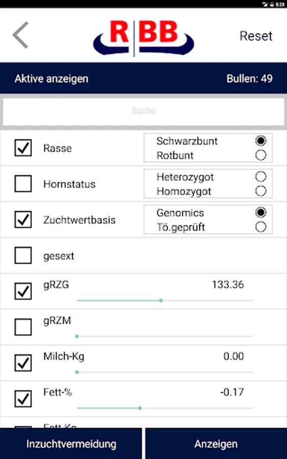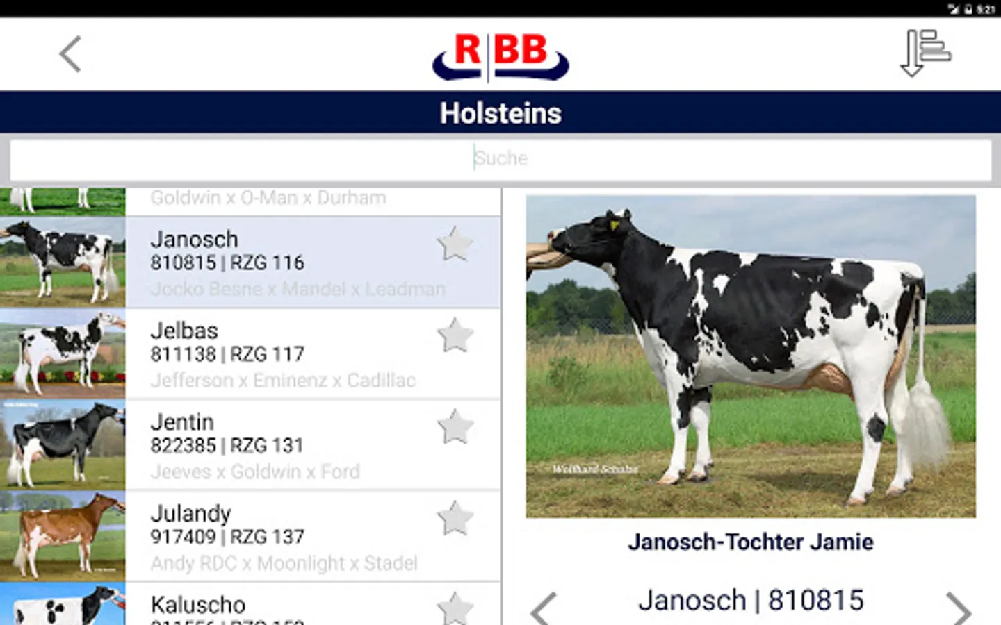 With the RBB App allows user to conveniently make your sire selection. Would you all Holstein bulls from the current range see only select among the genomic sires or are you interested especially for genetically hornless bulls? In any case, you will be in our offer soon found thanks to comfortable search criteria: