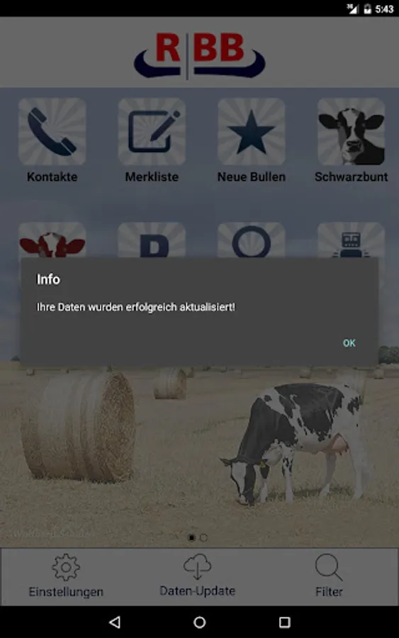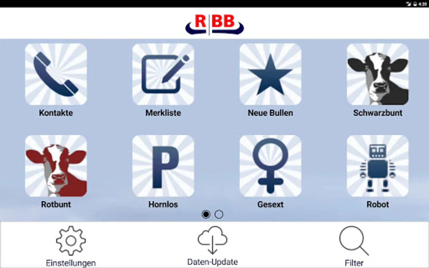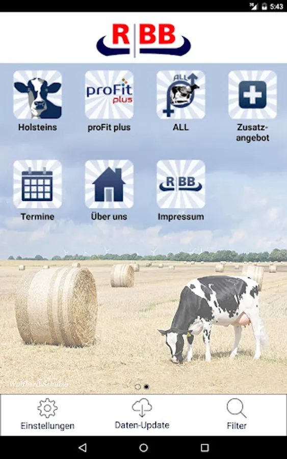 The RBB cattle production Berlin-Brandenburg GmbH offers in the fields of breeding, insemination and marketing of cattle even better service! Find the RBB App with your contact. Thanks to direct-line and mail function of the contact is very simple.