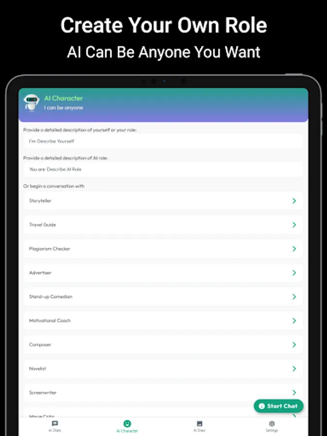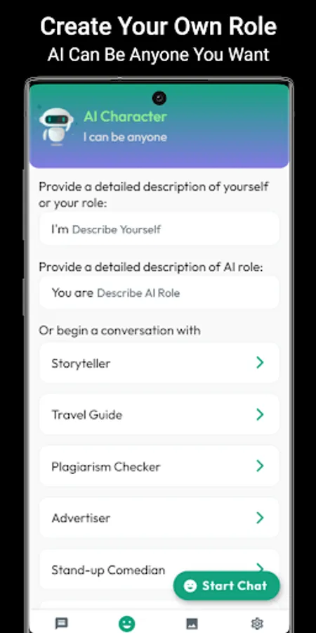 AI Character: Discover the power of AI Character, which allows you to create virtual characters that can simulate human-like behavior and responses. Customize their appearance, personality traits, and interact with them in engaging conversations. Engage in natural and intuitive conversations with our AI chatbot. Ask questions, seek advice, or simply enjoy a friendly chat. Our chatbot understands your queries and provides personalized responses.