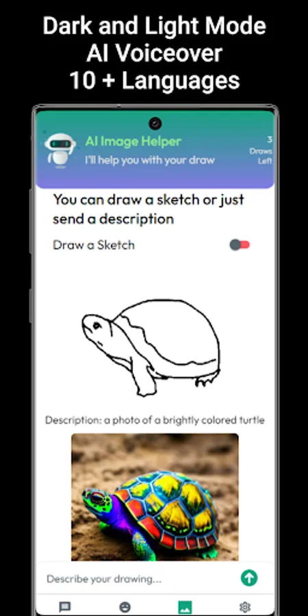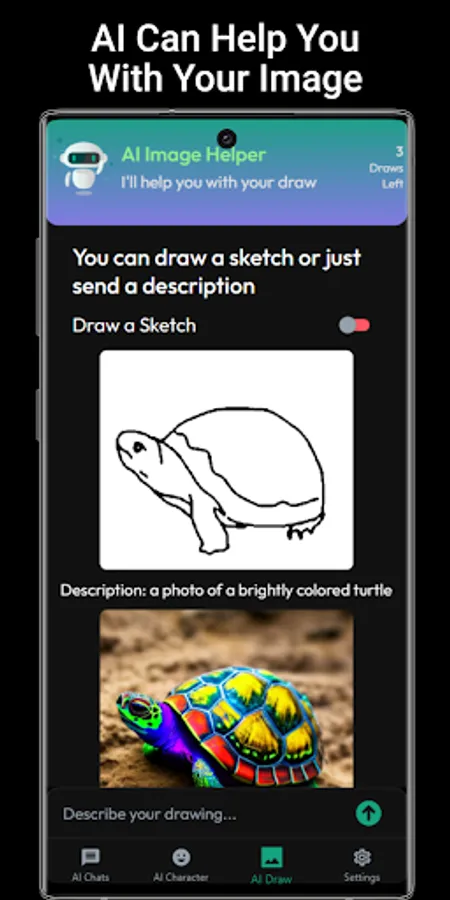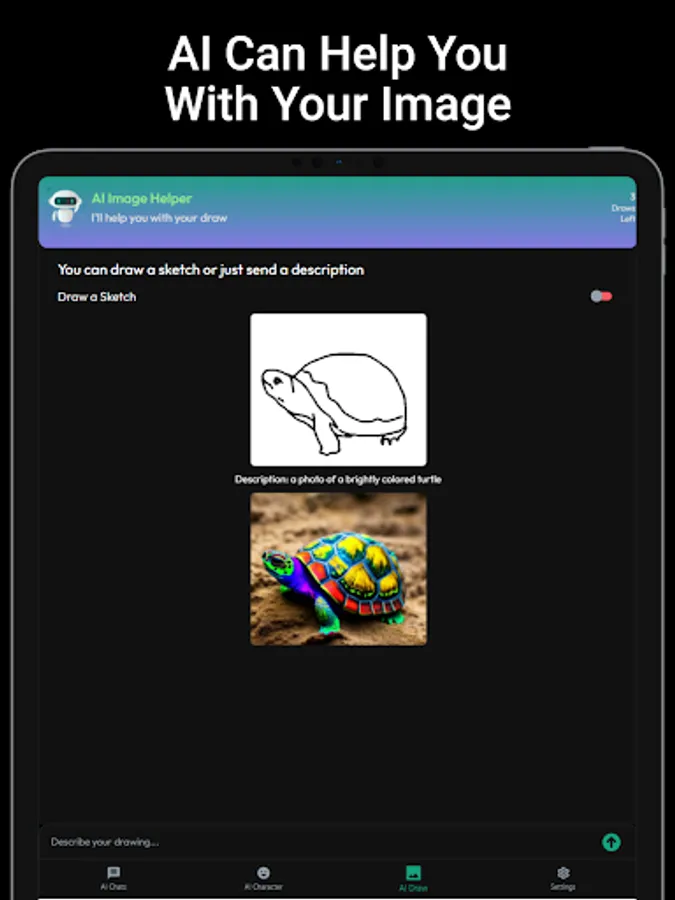 AI Draw: Unleash your creativity with AI Draw. This feature utilizes AI-powered image generation to assist you in creating stunning and unique artwork. Let your imagination run wild and bring your ideas to life. AI Draw feature to transform your sketches or rough outlines into polished and professional-looking images. Whether you're an artist or simply enjoy doodling, our AI technology can enhance your artwork effortlessly.