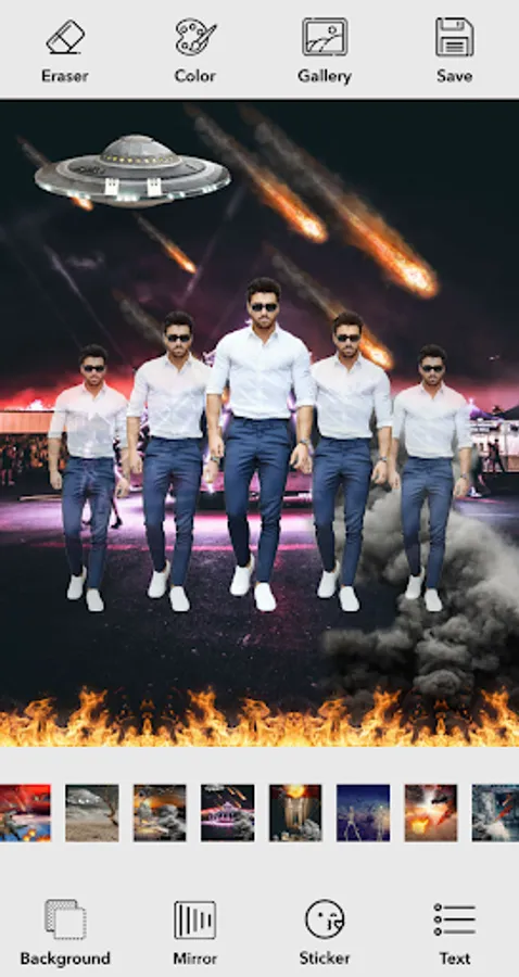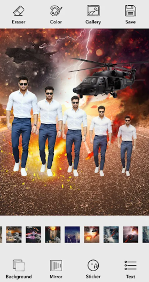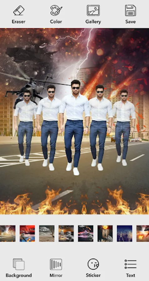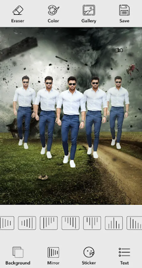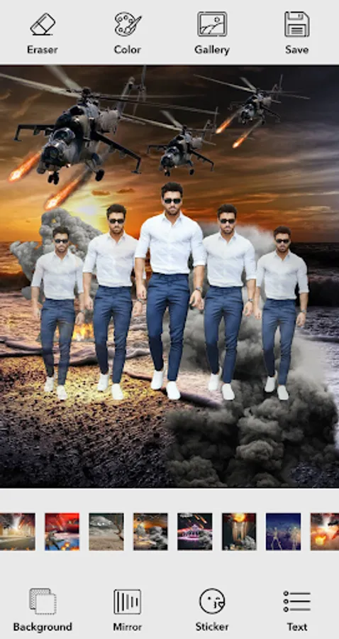 Add Echo Magic Mirror Effect to pictures Multiple mirror, crazy mirror, clone mirror. Add clone yourself with multiple mirror effects, let try new echo mirror magic effect app. This app has 22 different types of mirror magic effects. Make echo image yourself to your image, make slow motion of your photo. Create amazing mirror effects with clone effects, mirror image effects, multiple effects and more. Change your background as you like, we have more than 30 HD backgrounds available. Add sticker, add text, choose your own background,...