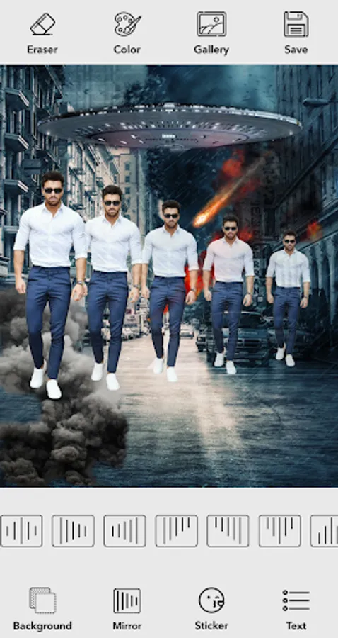 Amazing mirror effects app which will let you select your photo, cut out your body, apply various mirror magic (Echo), choose your love background, add sticker, add text.