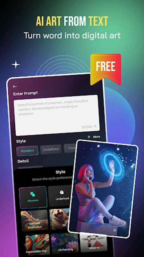 ► Convert words to images: this feature is completely FREE. Our AI photo maker lets you unleash your creativity. Just enter the description, in a split second your image will appear beautiful