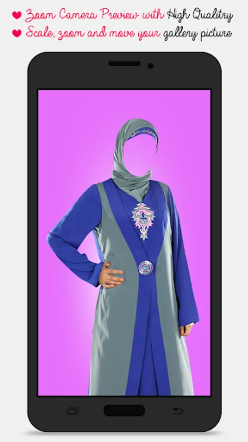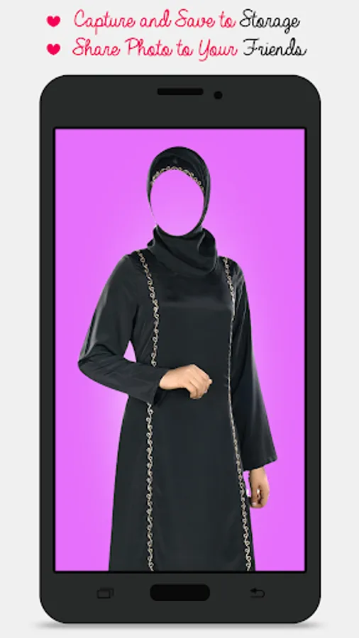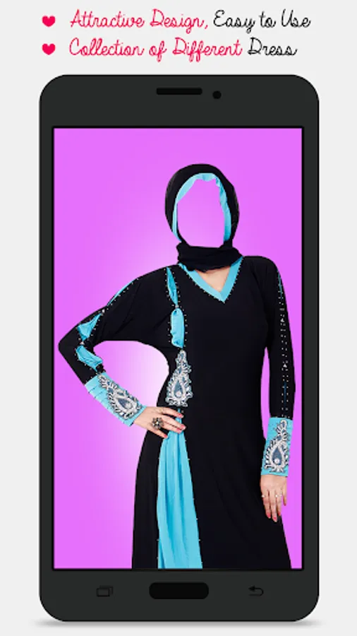 With this amazing application you can put your face into several Burka Fashion Suits . Burka Fashion Suit app has many suits to try . Just a single click and you can try wide variety of suits on you.