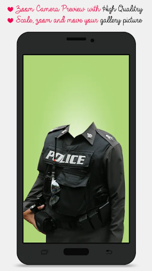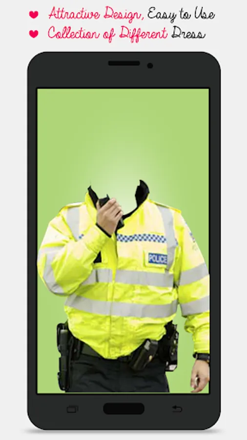 With this amazing application you can put your face into several Traffic Police Photo Suit Makers . Traffic Police Photo Suit Maker app has many suits to try . Just a single click and you can try wide variety of suits on you.
