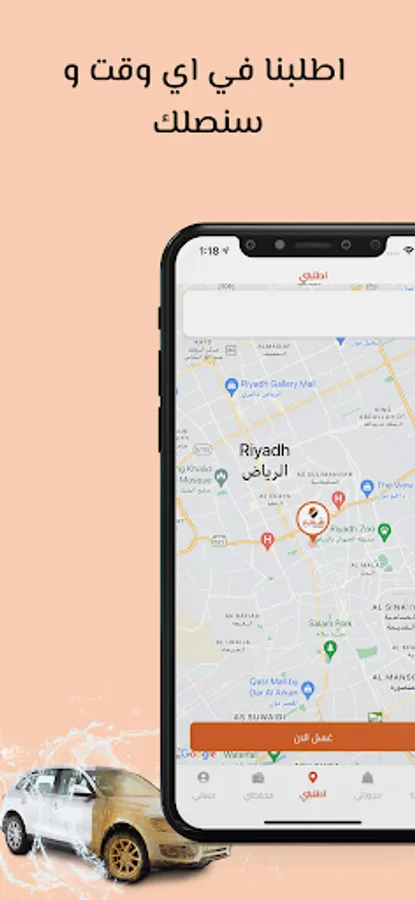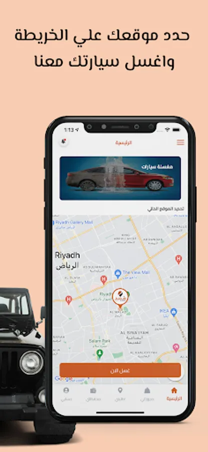 An application to download for free to provide car wash service to any customer wherever he is in all cities of the Kingdom without the need to go to a laundromat.