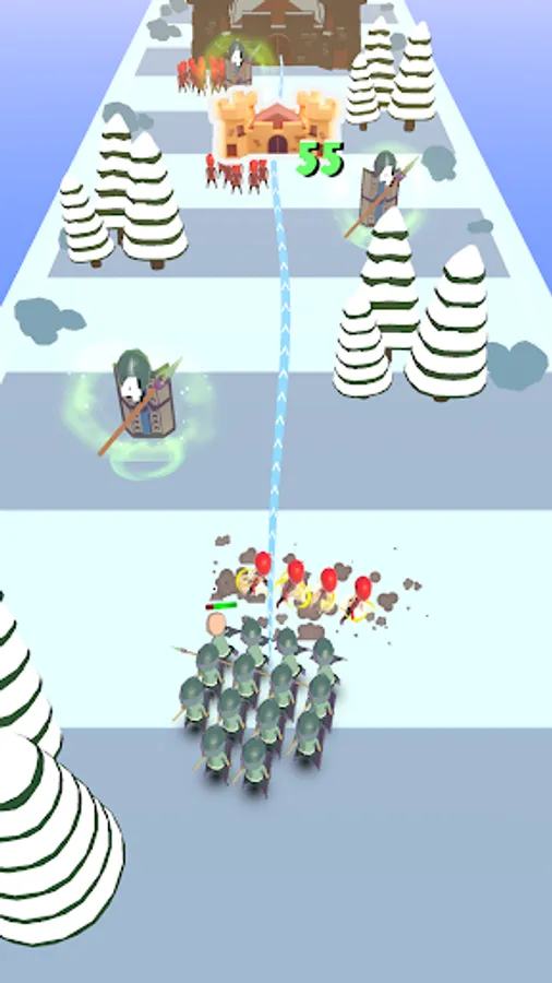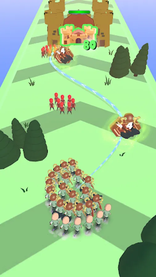 Avoid obstacles while leading your army on wavey way.