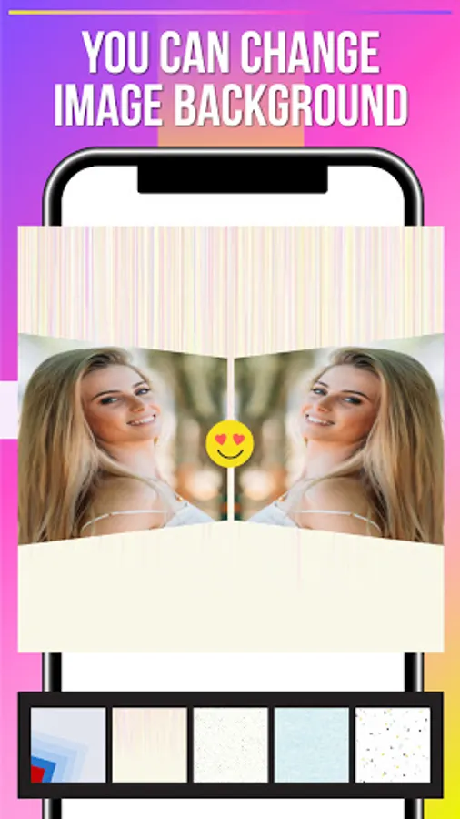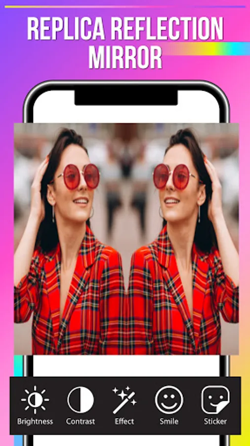 Instantly click your cute, funny photo and import then apply different mirror effects, change backgrounds, brightness, add stickers, emojis, apply filters with lots of options in our platform. Photo Mirror app is super easy to use and free of cost. Make your photo more attractive and share it with a friend on social media.