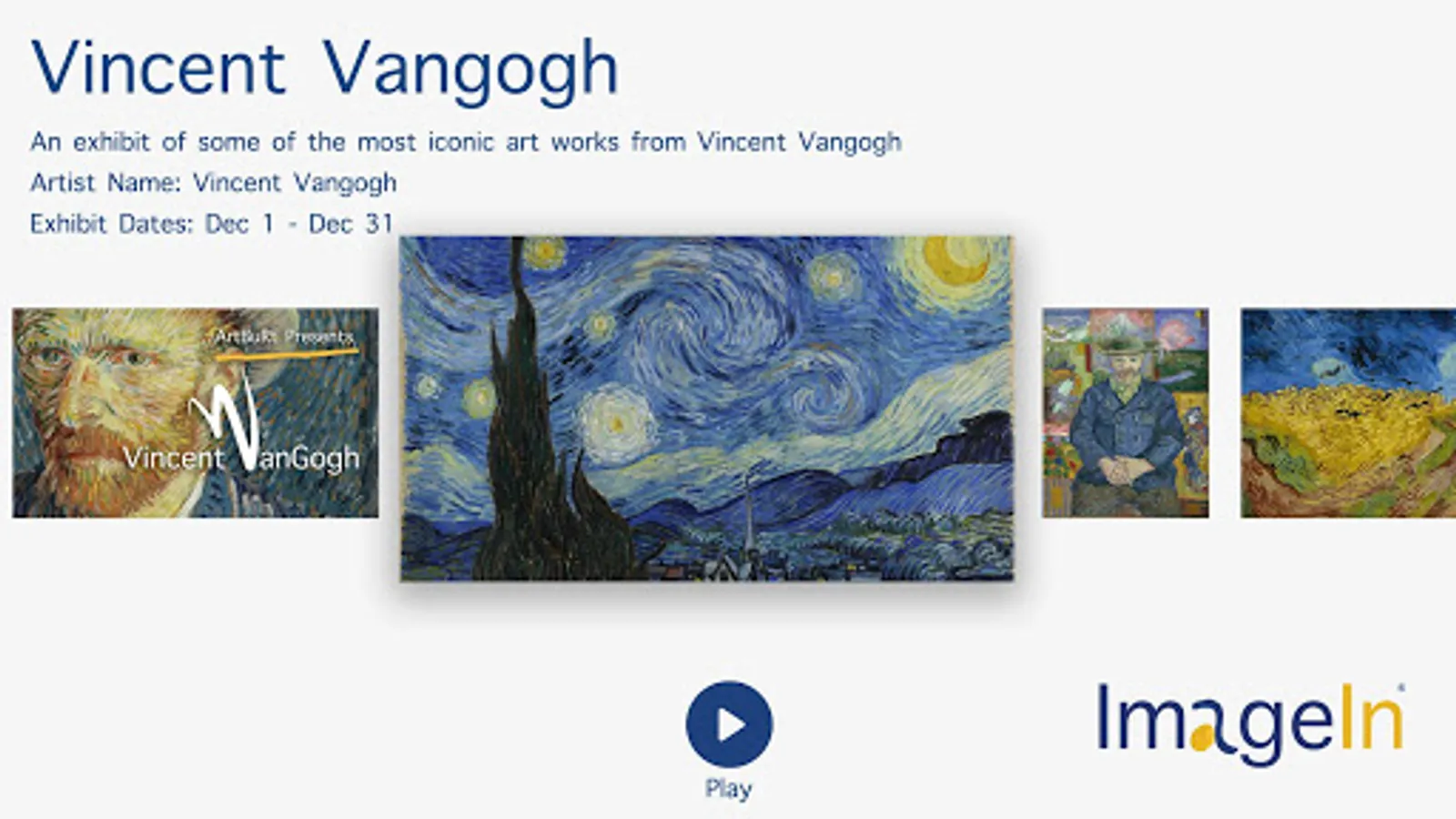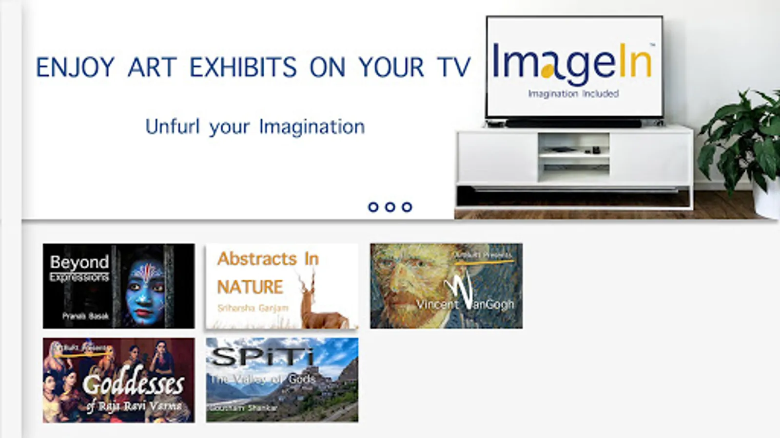 ImageIn is a Smart TV application for art and photography lovers that brings a variety of exciting art exhibits from artists around the world onto your TV screens for free. Experience art BIG on TV and buy physical art if you like what you see straight from the TV. The latest update now includes the ability to upload your personal images from your linked mobile phones and see them BIG on your personal TV without needing to screencast.
