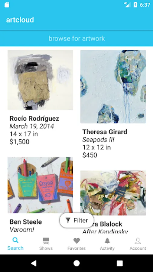 artcloud is a free and easy way to be social and stay current on art events around the world, browse works from thousands of galleries, and manage your own personal collection.