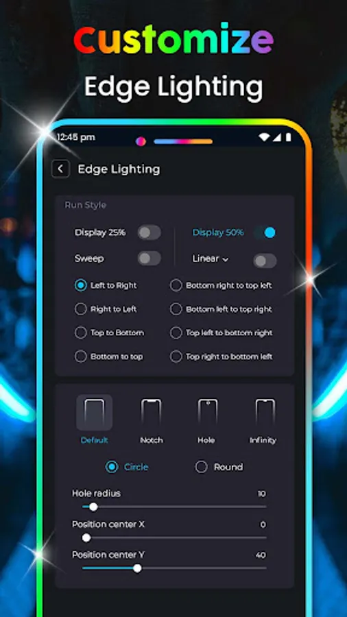 . Adjust your picture as Edge Light live Wallpaper Always on display AOE between the colorful RGB light screen display light