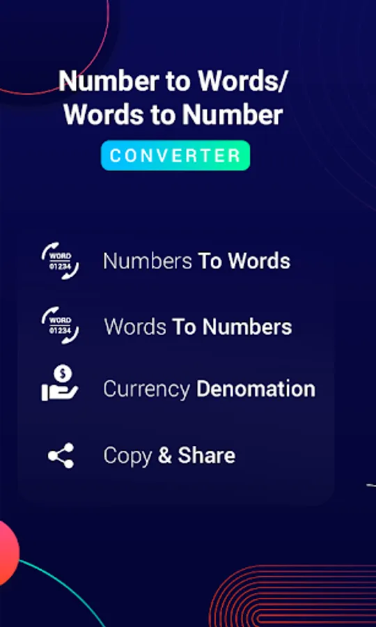 Many a times we wonder how to write amount in words or number to words. With the help of this app you can easily type the amount or number to get it in words. Also in different countries it written differently. You can choose the country from USA, UK, Russia, India, Italy, Poland, Spanish or France.