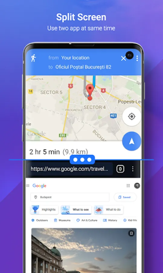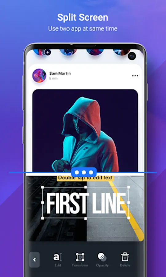 This is simple app that converts your single screen to dual screen. The split screen can allow you to use 2 apps simultaneously. Also get predefined apps like - calculator, file manager, video player, etc, to perform multitask quickly.