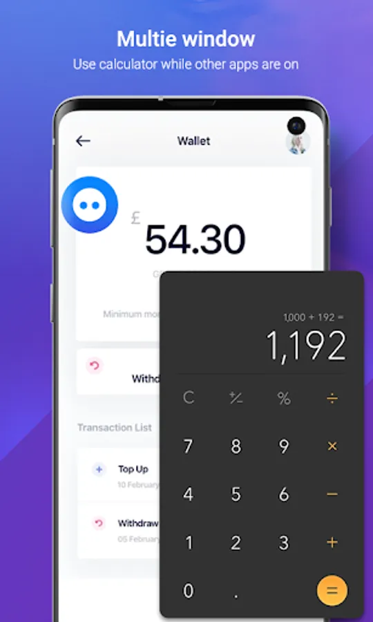 - Using multi-window service to open more apps at the same time in floating windows and do multitasking.