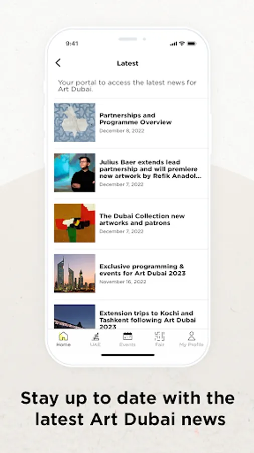 · Stay up-to-date with the latest Art Dubai announcements and news