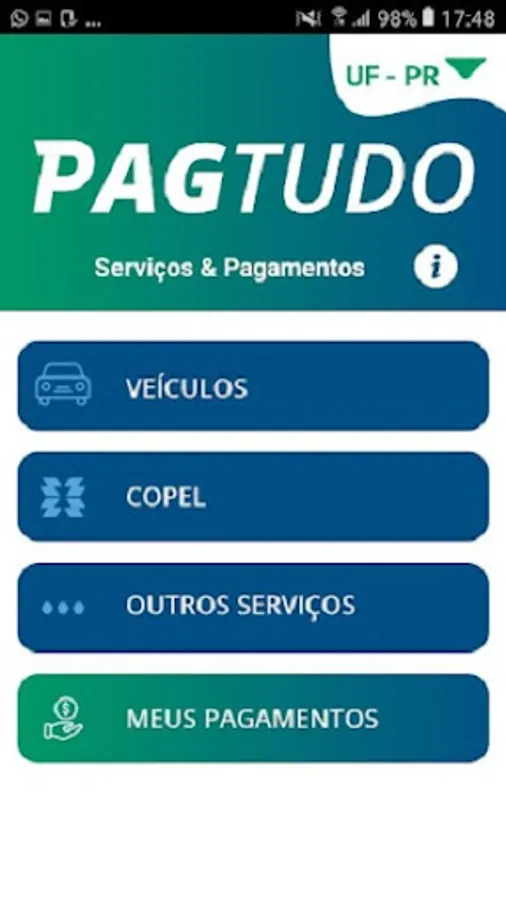 At Pag Tudo, you have at your disposal the fastest, most efficient, safest and most accessible way to pay fees, bills, contributions and tariffs from bodies, autarchies and concessionaires of public services. All of this available on your smartphone, or at the self-service totems spread throughout Paraná.
