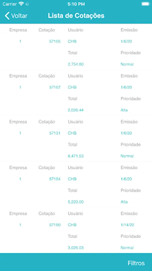The CHB Compras Application is intended for users who authorize quotes and orders from CHB WEB. This application was developed for internal use by partners who use the CHB system.